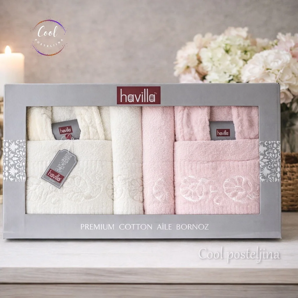 Tražite savršen poklon za parove ili jednostavno želite da uživate u vrhunskom komforu kod kuće? Turski set bademantila „Havilla“ je idealan izbor!
