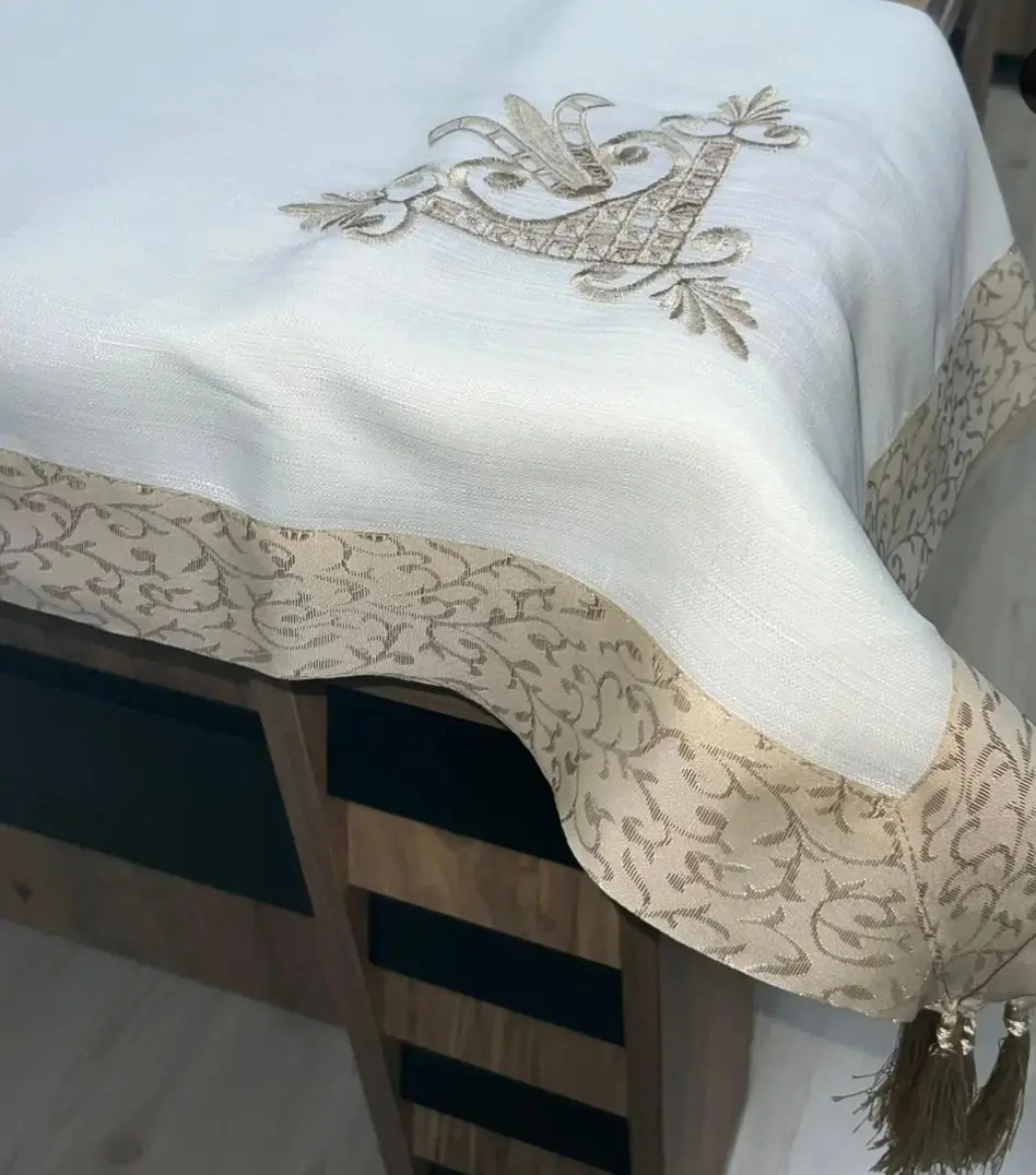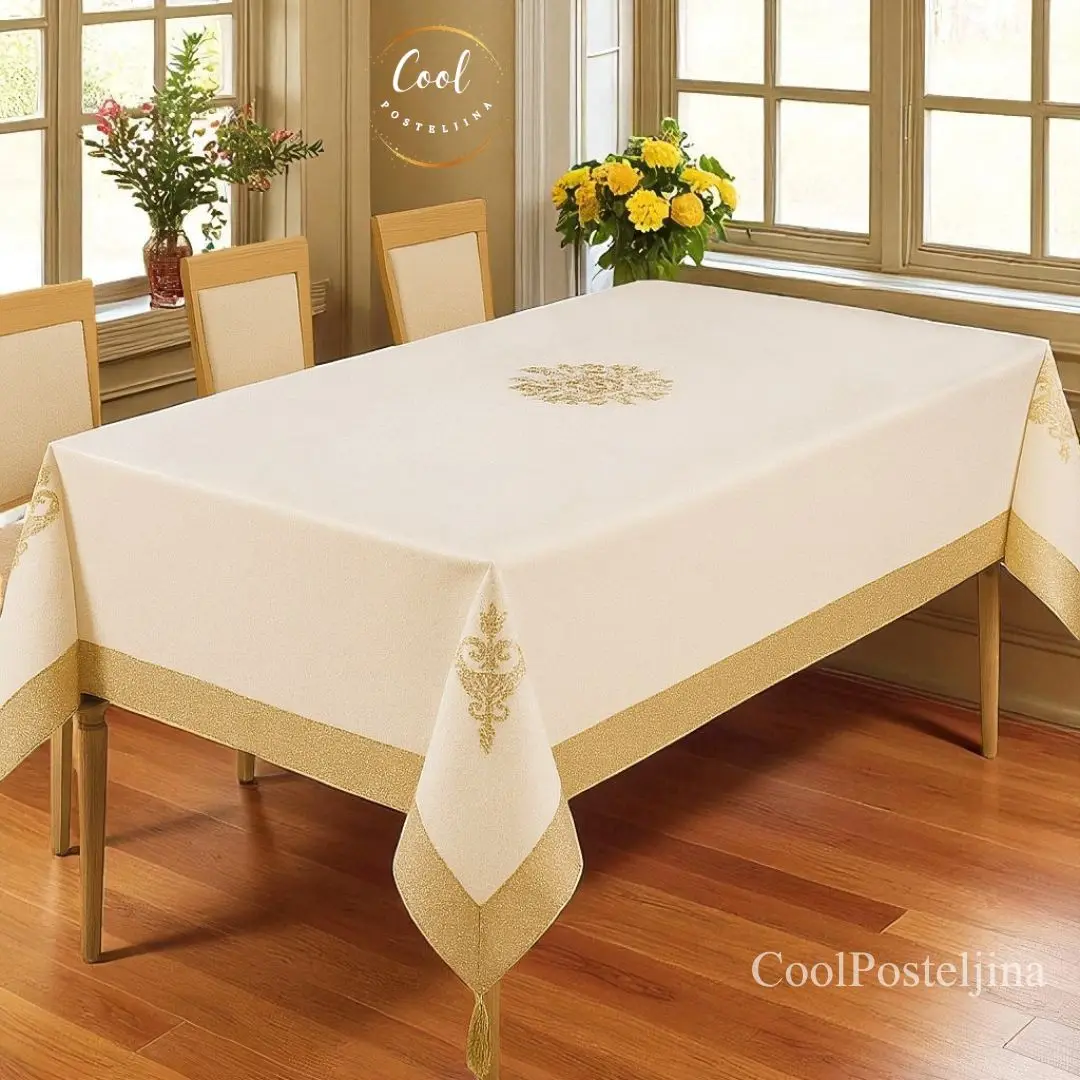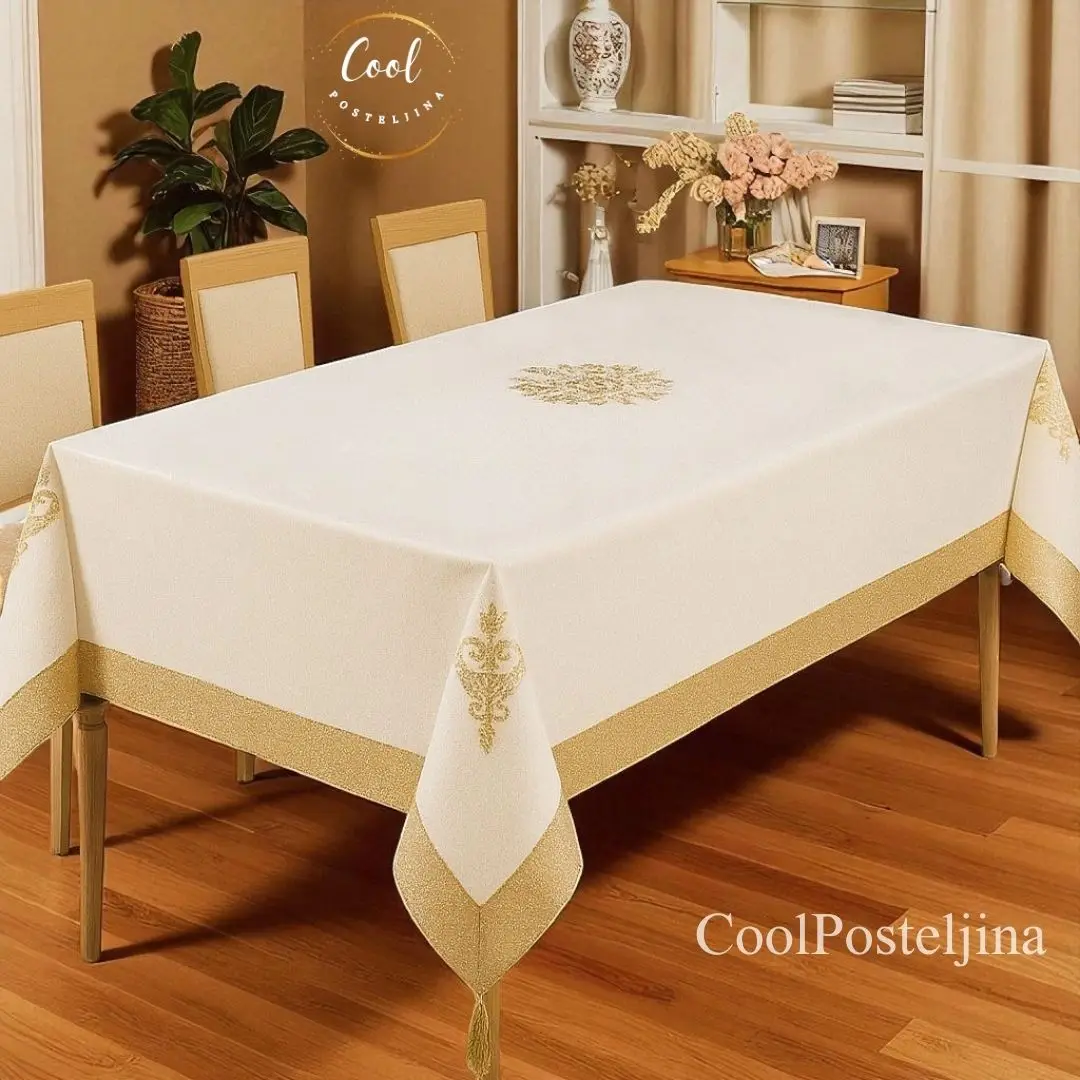 Elegancija i kvalitet u jednom – stolnjaci sa vezom i kićankama, dostupni u više boja.