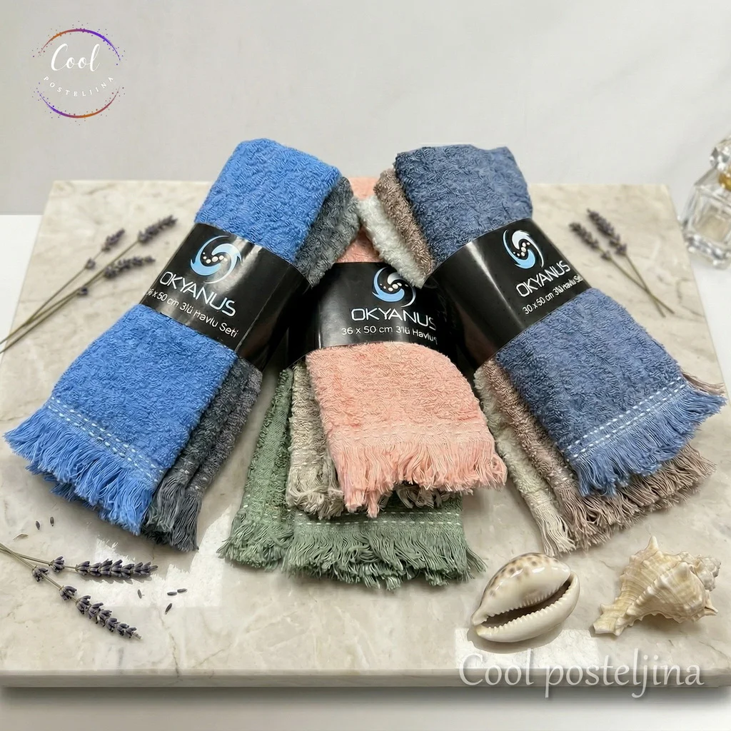 Unesite dodir luksuza u svoju rutinu uz Okyanus set peškira. Ovi peškiri su izrađeni od vrhunskog turskog pamuka, izuzetno su nežni, ne iritiraju kožu i brzo se suše. Zahvaljujući elegantnom žakard tkanju i praktičnim dimenzijama, savršen su izbor za svako kupatilo.